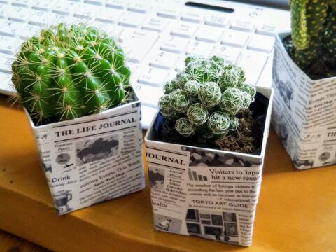 100均のサボテン 白い鉢を100均の英字新聞柄マスキングテープでリメイク 暮らしニスタ