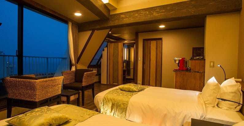 角部屋 露天風呂付アジアンテイストハリウッドツインルーム 公式 伊豆稲取温泉 湯苑別館 sazana さざな